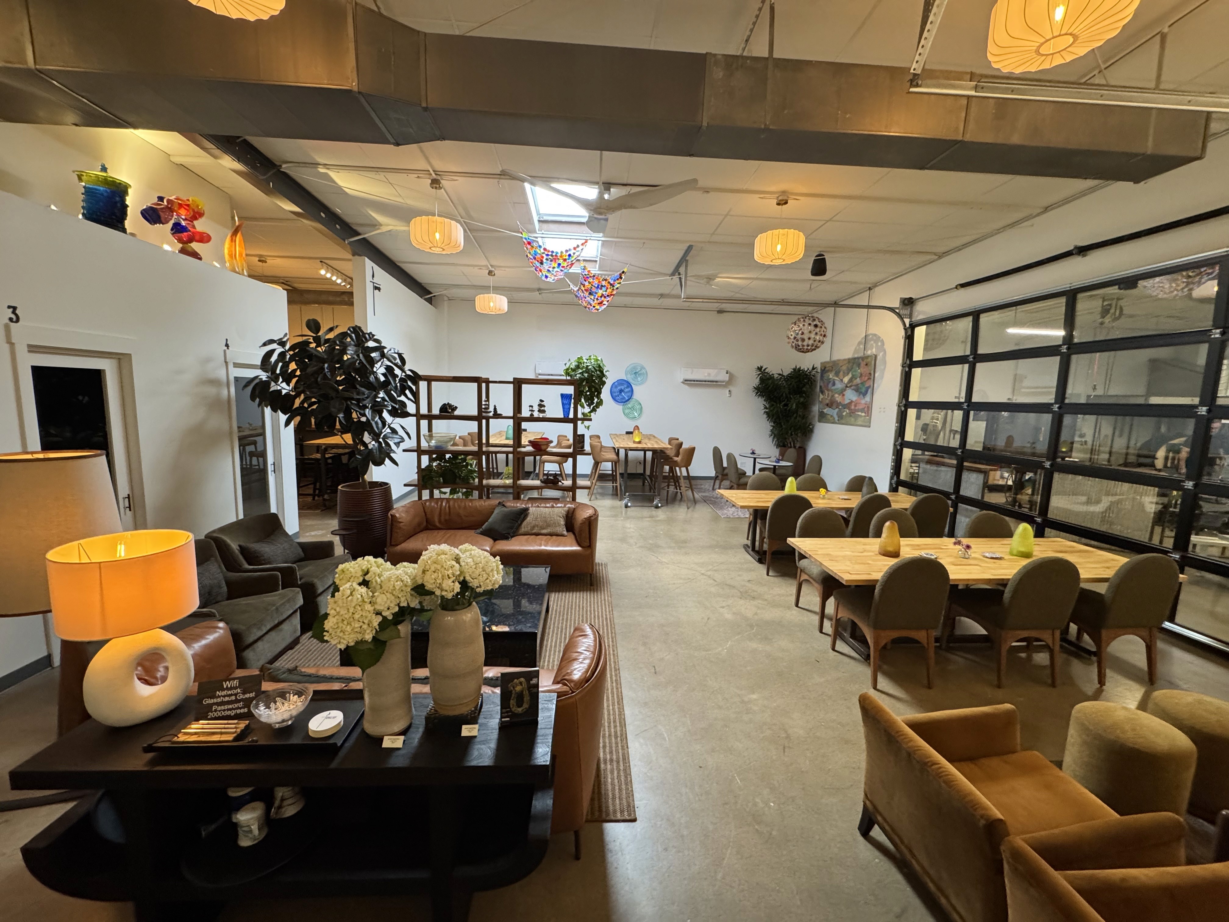 Our coworking space, with curated, fine, glass-blown art throughout, is available throughout the week to work from, take meetings, or just escape from the outside world. We share our space with inspirational and talented glass artists and Maxwell Gallery. Members receive a monthly credit to host your own private events.